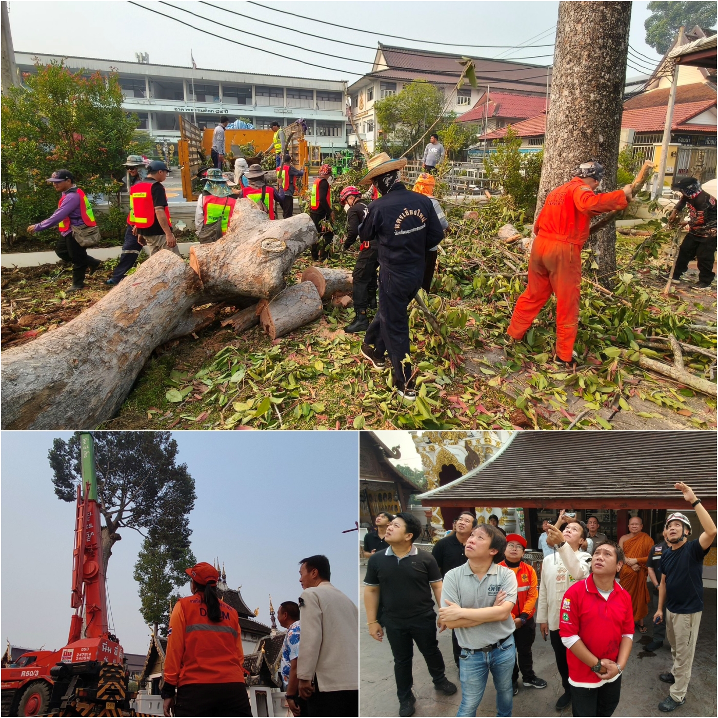 วันที่ 17 เม.ย. 69 นายรัฐพล นราดิศร ผู้ว่าราชการจังหวัดเชียงใหม่ ตรวจพื้นที่เกิดเหตุกิ่งต้นยางนาอายุกว่า 200 ปี หักหล่นลงมาสร้างความเสียหาย กับเสาไฟฟ้าแรงสูง และสิ่งปลูกสร้าง บริเวณใกล้เสาอินทขิล วัดเจดีย์หลวงวรวิหาร ซึ่งเหตุการณ์นี้เกิดเมื่อเวลาประมาณ 18:00 น. ของวันที่ 16 เม.ย. ที่ผ่านมา ไม่มีผู้ใดได้รับบาดเจ็บ