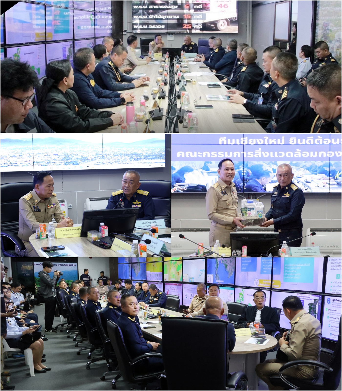 วันที่ 22 ธ.ค. 68 ที่ห้องปฏิบัติการศูนย์อำนวยการป้องกันและแก้ไขปัญหาไฟป่า หมอกควัน และฝุ่นละออง จังหวัดเชียงใหม่ นายบุญลือ ธรรมธรานุรักษ์ รองผู้ว่าราชการจังหวัดเชียงใหม่ ให้การต้อนรับ พลอากาศเอก ไพฑูรย์ ไล้เลิศ ผู้ทรงคุณวุฒิพิเศษกองทัพอากาศ ประธานกรรมการสิ่งแวดล้อมกองทัพอากาศ พร้อมคณะ ในโอกาสเดินทางเข้าหารือแนวทางการแก้ไขปัญหาฝุ่นละอองขนาดเล็ก PM2.5 การประสานการปฏิบัติงานร่วมกัน และการกำหนดความต้องการด้านสิ่งแวดล้อมของกองทัพอากาศ ให้สอดคล้องกับแผนยุทธศาสตร์สิ่งแวดล้อมกองทัพอากาศ ระยะ 20 ปี (พ.ศ. 2562 – 2581)